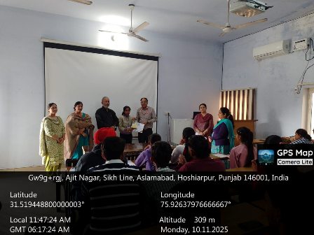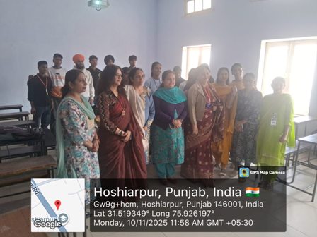 The Postgraduate Department of Political Science, in collaboration with the Institution’s Innovation Council (IIC), D.A.V. College, Hoshiarpur, organized an expert talk on November 6, 2025. The session, held under the esteemed guidance of Prof. (Dr.) Vinay Kumar, Principal, D.A.V. College, witnessed enthusiastic participation from 30 B.A. students.The objective of the session was to deepen understanding of gender equality as both a constitutional mandate and a social imperative. It aimed to highlight how the Indian Constitution—particularly Articles 14, 15, and 16—prohibits discrimination on the basis of sex and empowers the State to take affirmative measures for women’s advancement. The session also explored how legal frameworks and political innovation intersect to promote gender justice.