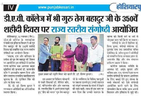 The Post-Graduate Department of Commerce and Management at D.A.V. College, Hoshiarpur, organized a one-day National Seminar on 'Corporate Social Responsibility and Sustainable Development,' sponsored by the College Development Council, Panjab University, Chandigarh.