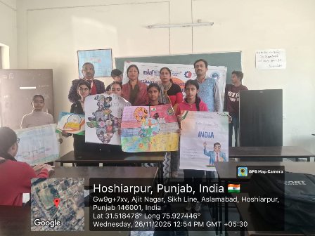 On 26th November 2025, DAV College, Hoshiarpur, celebrated Constitution Day (Samvidhan Diwas) with great enthusiasm and commitment. The event, held under the supervision of Principal Prof. (Dr.) Vinay Kumar, was a collective venture of the Institution’s Innovation Council (IIC) and P.G. Department of Political Science.It was organized to reaffirm the ideals enshrined in the Constitution of India and to encourage active participation of students and staff in this important national observance. The programme began with the collective reading of the Preamble to the Constitution, conducted in the college premises. Students and faculty members gathered together to recite the Preamble, thereby reinforcing the values of justice, liberty, equality, and fraternity that form the foundation of Indian democracy.