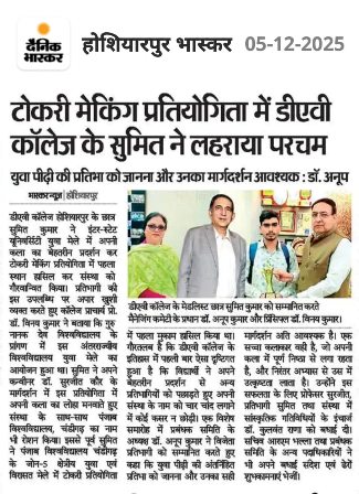 DAV College, Hoshiarpur, has achieved a historic milestone with student Sumit Kumar winning first place in the Tokri Making Competition at the Inter-State University Youth Festival. The event was held on November 30, 2025, at Guru Nanak Dev University Amritsar, where Sumit’s exceptional artistry and dedication earned him top honors. Guided by his convener, Dr. Surjit Kaur, Sumit’s performance brought pride not only to DAV College but also to Panjab University, Chandigarh. Earlier, Sumit had also secured first place in the Tokri Making Competition at the Zone-5 Regional Youth and Heritage Festival of Panjab University, Chandigarh, demonstrating consistent excellence in his craft.