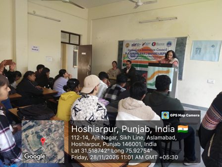 D.A.V. College, Hoshiarpur, November 10, 2025, the Institution’s Innovation Cell (IIC) under its YUKTI Programme, organized an inspiring workshop on “Entrepreneurship and Creativity as Career Opportunities.” The session featured Ms. Tushti S. Sharma, an innovative dress designer and proprietor of Mkhano, as the resource person.The workshop aimed to reflect how creative skills can be transformed into successful careers, motivating students to believe in their potential. After a formal welcome, Ms. Tushti interacted with students from various streams, sharing her entrepreneurial journey—from humble beginnings to becoming a recognized designer.